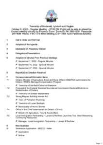 Agenda | Regular Council Meeting – October 5, 2022 View or download this Document Document Date: 2022-10-05 Agenda | Special Council Meeting – September 16, 2022 Agenda | Public Council Meeting – October 5, 2022
