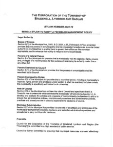 Feedback Management Policy – Bylaw #2022-19 View or download this Document Document Date: 2022-04-06 This Document appears on the following Content Pages: Bylaws, This Document appears on the following Articles: Accessibility, Accessibility Progress Report Code of Conduct – Mini Gym