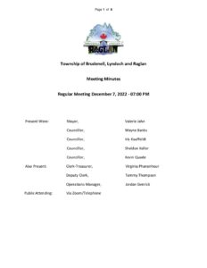 Minutes | Regular Council Meeting – December 7, 2022