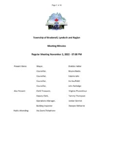Minutes | Regular Council Meeting – November 2, 2022 View or download this Document Document Date: 2022-11-02 Agenda | Regular Council Meeting – December 7, 2022 Minutes | Inaugural Council Meeting – November 16, 2022