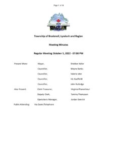 Minutes | Regular Council Meeting – October 5, 2022 View or download this Document Document Date: 2022-11-02 Agenda | Regular Council Meeting – November 2, 2022 -Amended Minutes | Public Council Meeting – October 5, 2022