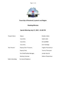 Minutes | Special Council Meeting – July 27, 2022 View or download this Document Document Date: 2022-07-27 Agenda | Inaugural Council Meeting – November 16, 2022 Public Works Maintenance Requisition