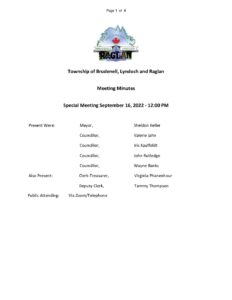 Minutes | Special Council Meeting – September 16, 2022