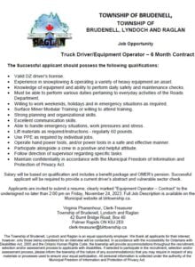 Job Opportunity – Truck Driver/Equipment Operator – 6-month Contract